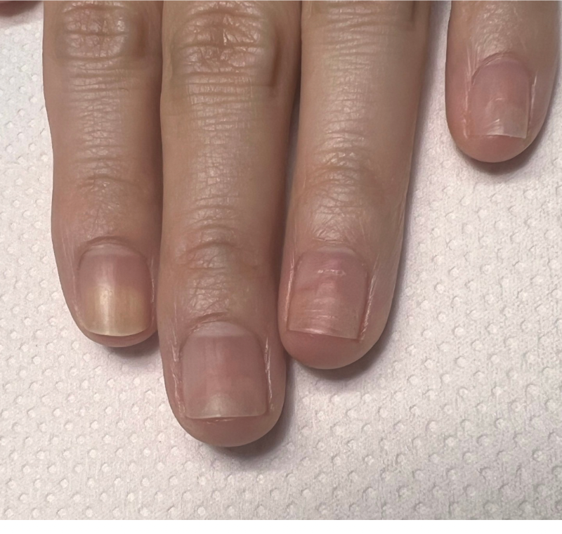 ほとんどのお爪に剥離がみられます。